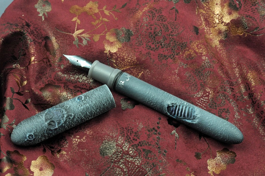 November 3, 2021: New Cerakote ceramic finish coat on cap, barrel, and section. Improved color match between section and barrel. “Moon Walk” pen sleeve by Rickshaw Bags replaces previous 3D printed box. All of these are included on the last 15 Limited Edition pens.
